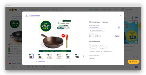 - Opportunity to look through landings, websites and product pages, where the ad leads to